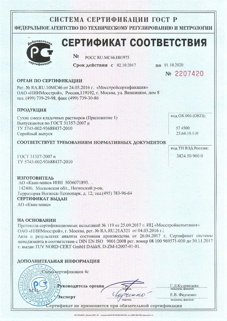 Высокое качество нашей продукции подтверждено сертификатами и действующими ГОСТами