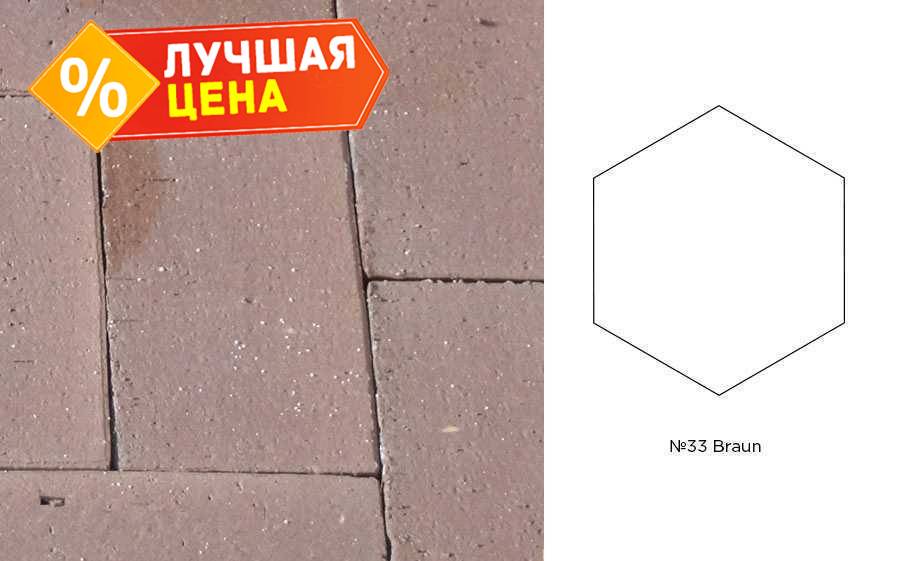 Клинкерная брусчатка Muhr №33 Braun, гексагон 200x52 мм